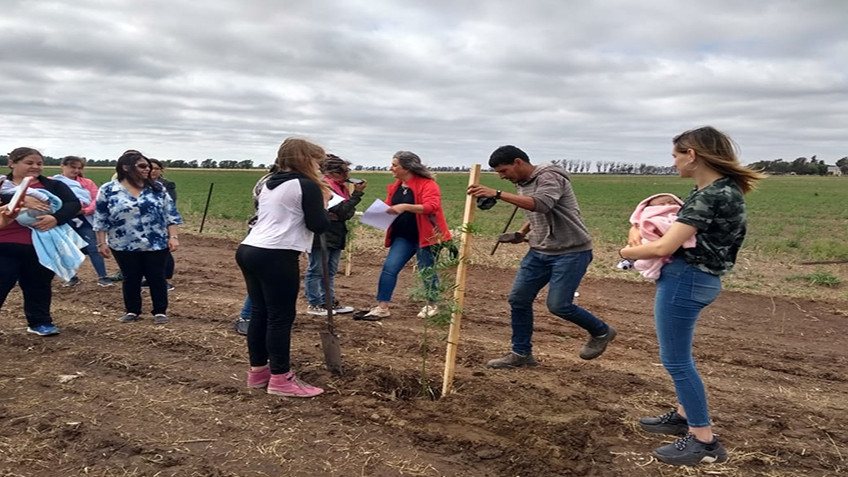 Con la presencia de las familias con sus niños nacidos entre el 1º de Agosto y el 16 de Octubre, se realizó la plantación de 23 árboles (aguaribay y eucalipto medicinal) en la zona este de nuestra localidad.